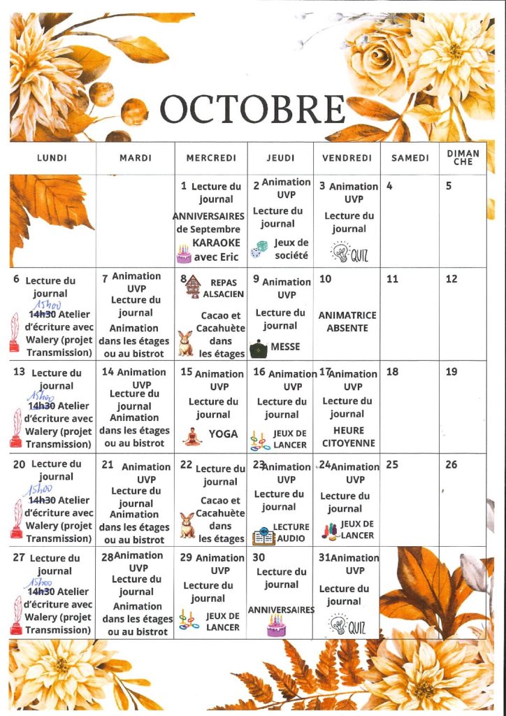 Planning des animations du mois d’octobre par Yvana - Clara Animatrices | 27 Sep 2025 | Animations, Programmes d'activités
